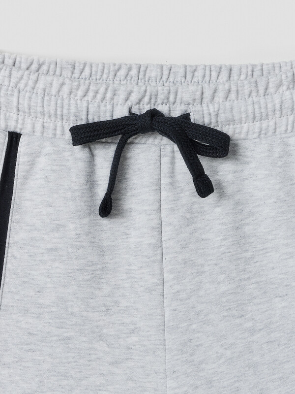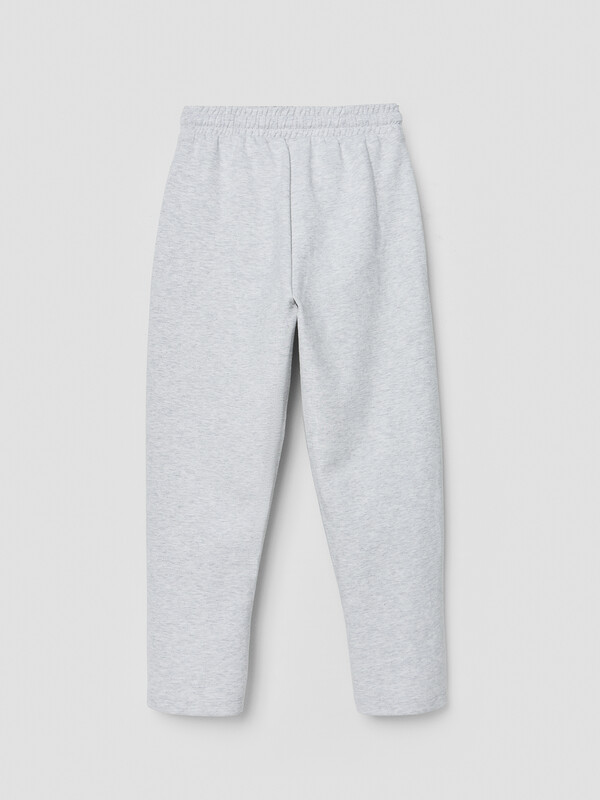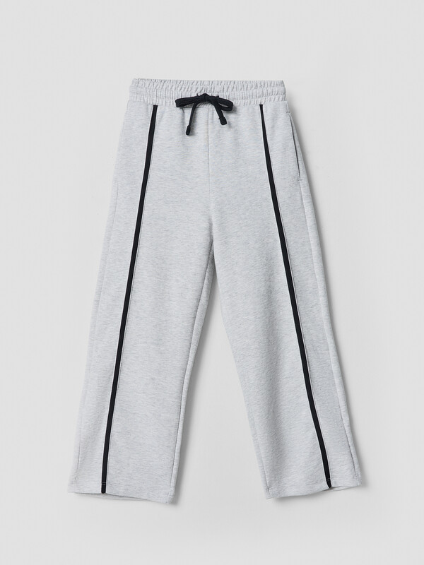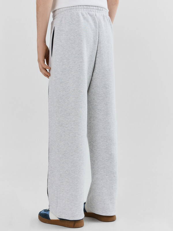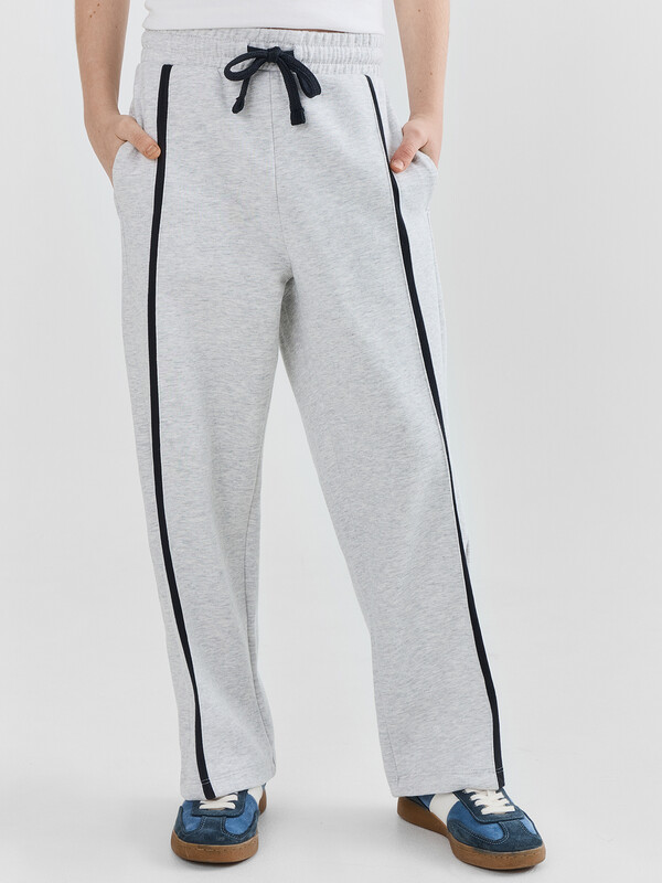 Брюки прямые свободные, посадка средняя. Пояс отрезной, с эластичной тесьмой внутри (внутренняя 50мм 50RV). С внешней стороны пробиты петли и вставлен шнур 10PX-2. В боковых швах обработаны карманы. По бокам лампасы из кулирки.