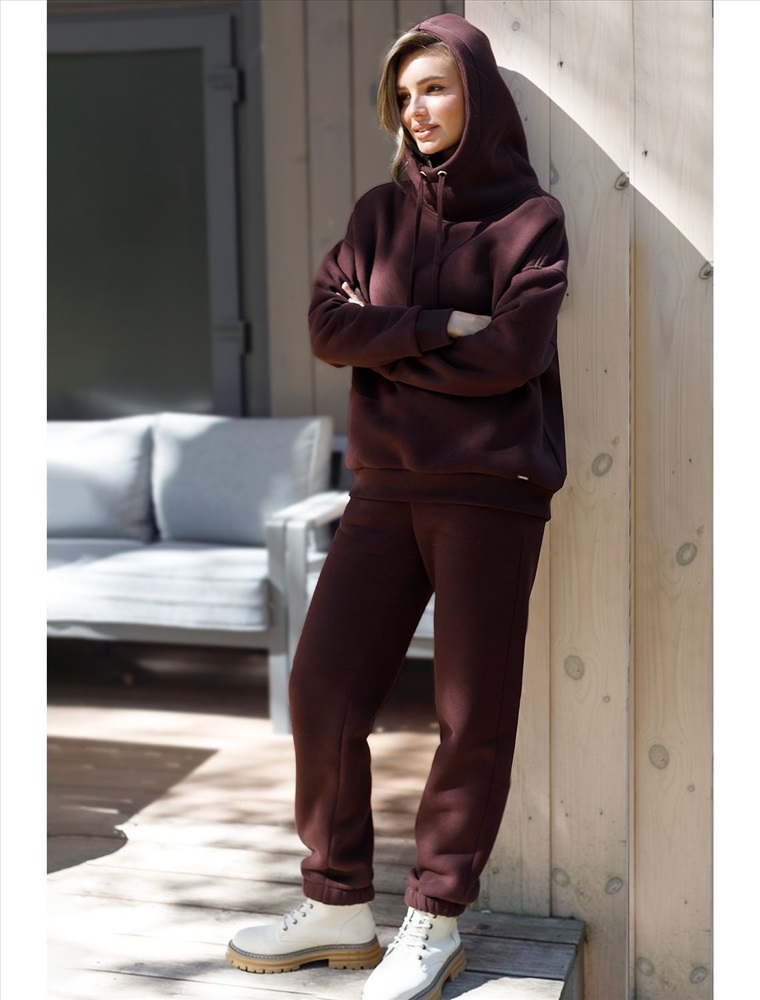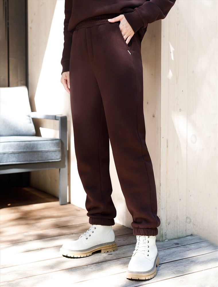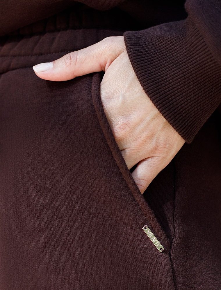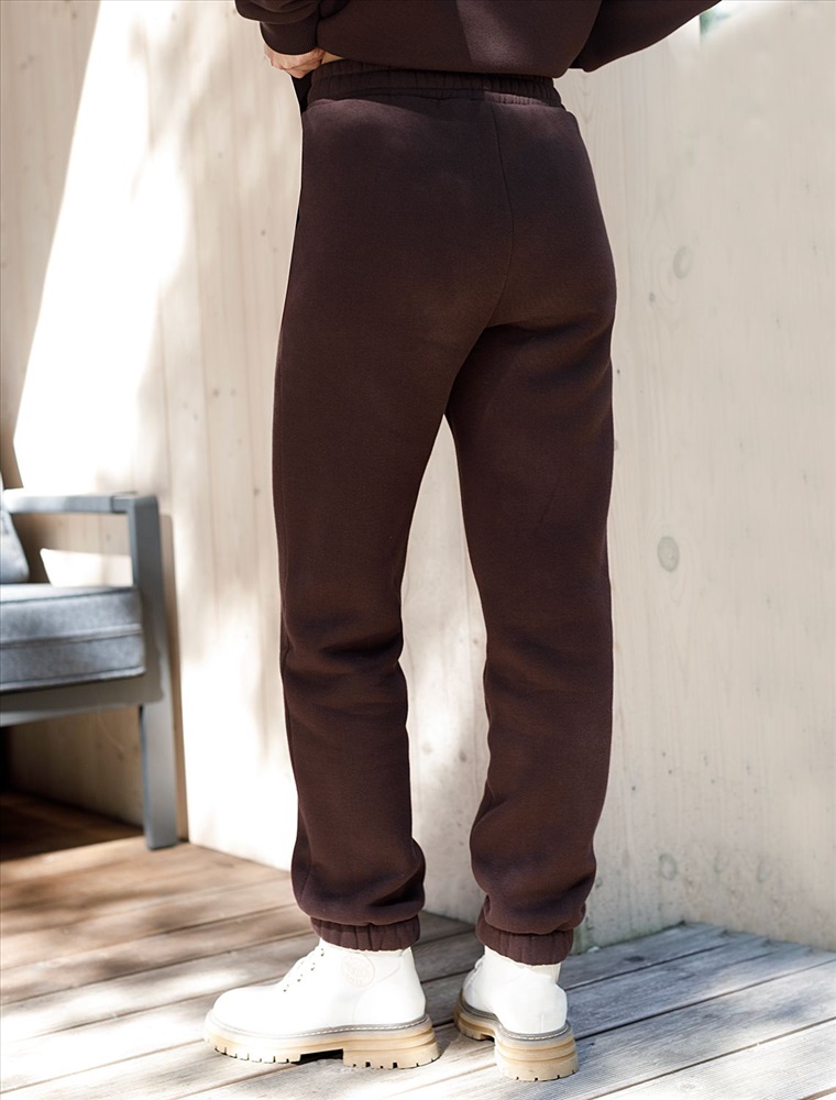 Эти уютные брюки актуального коричневого цвета созданы для вашего комфорта. Стильные спортивные штаны из натурального материала и правильного кроя подойдут для девушек и женщин любого размера, в том числе на плюс-сайз фигуру. Зауженные к низу брюки отлично вытянут силуэт и скроют недостатки за счет правильного кроя.