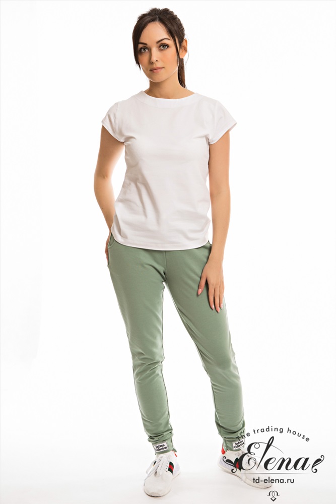 Цвет Номенклатуры: оливковый Спортивные брюки из футер петли с лайкрой. Зауженный покрой к низу, пояс на резинке, по бокам расположены карманы. Через петли в поясе продернут шнур. На передних частях манжет расположены нашивки.