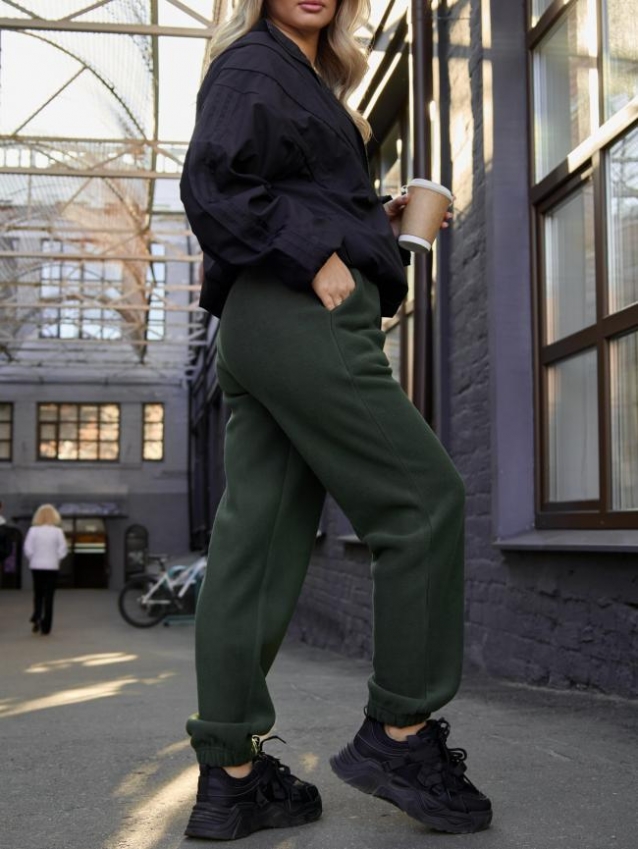 Брюки молодежные из трикотажного гладкокрашенного полотна «флис», длинные, на притачном поясе с эластичной тесьмой внутри и шнурком, продетым через две петли в центре пояса, с карманами в боковых швах и эластичной тесьмой по низу. Комментарии к товару