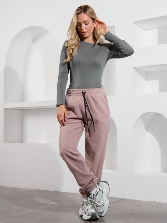 Брюки молодежные из трикотажного гладкокрашенного полотна «флис», длинные, на притачном поясе с эластичной тесьмой внутри и шнурком, продетым через две петли в центре пояса, с карманами в боковых швах и эластичной тесьмой по низу. Комментарии к товару
