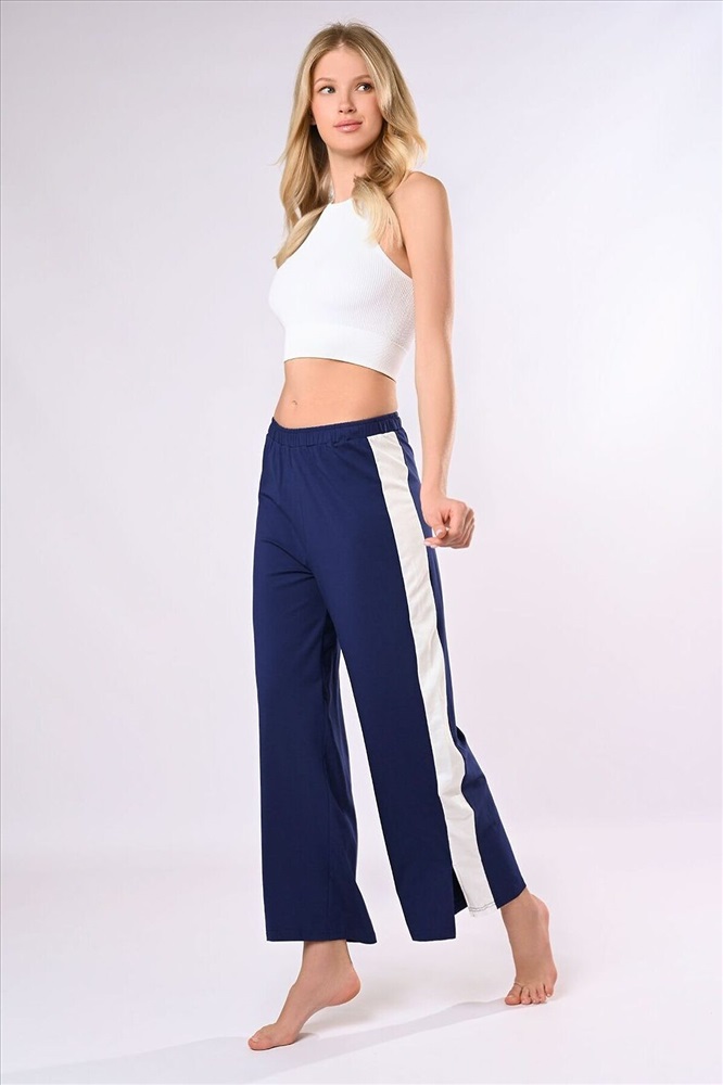 Женские брюки из модального материала комфортные и приятные на ощупь. Материал прочен, не подвержен усадке, не раздражает кожу и устойчив к износу. Брюки имеют вырезы снизу и широкую эластичную резинку на поясе, которая позволяет данной модели надёжно держаться при носке. Брюки идеально подойдут как для повседневной носки, так и для спортивных тренировок.