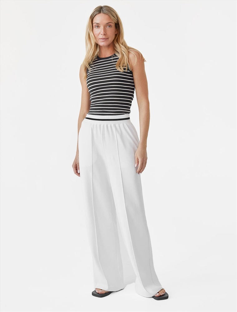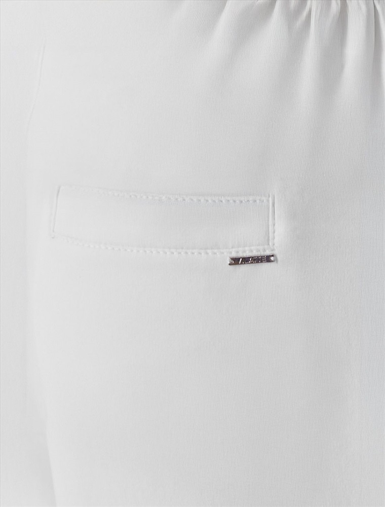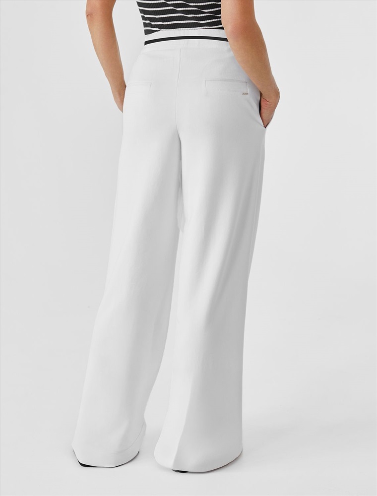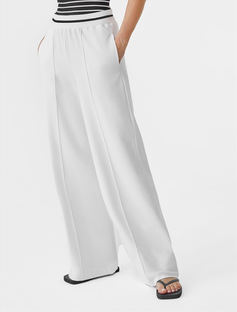Брюки прямого кроя выполнены из эластичного футера двухнитки. Модель свободного силуэта с отстроченными стрелками визуально удлиняющих ноги. В боковых швах расположены карманы. Внутренняя часть кармана из тонкого хлопка в тон полотна. Модель дополнена эластичным поясом, с контрастной полосой и золотистым логотипом бренда. Сочетается в костюме с джемпером D49.083 и D49.086. Правила ухода: использовать жидкое моющее средство (гель для стирки), добавлять к нему кислородный пятновыводитель для цветных вещей, и салфетки (защита от окрашивания). Стирка при 30 градусах, отжим на максимальных оборотах.