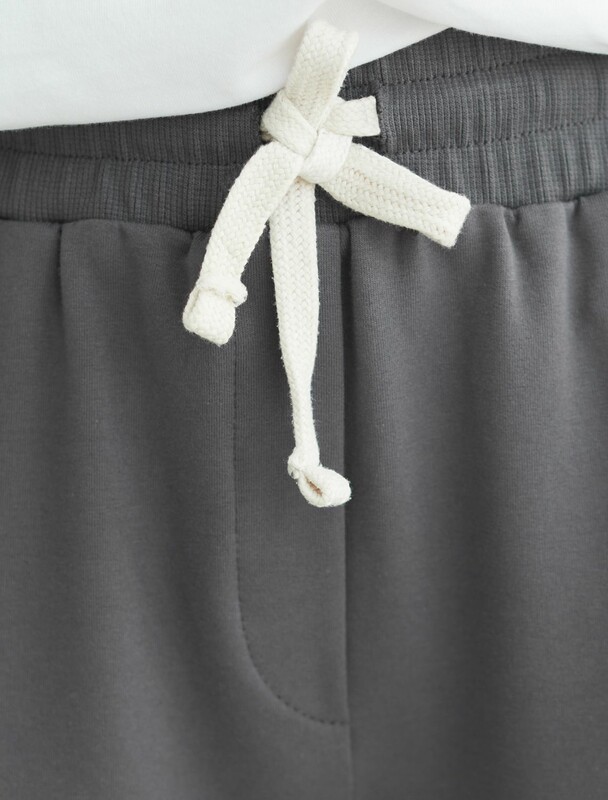 Брюки выполнены из тонкого хлопкового футера. Эластичный материал хорошо пропускает воздух, позволяя телу дышать, и легко тянется, не ограничивая движения. Пояс на резинке дополнен внутренним шнуром, для комфортной регулировки изделия. Брюки сочетаются в костюме с джемпером D49.054 и D49.055