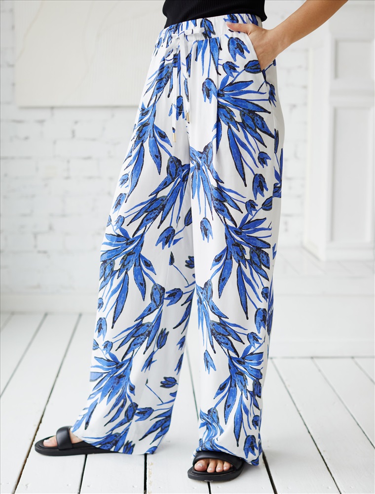 Состав: 55%Вис 45%Лиоцелл (Вис); Плотность: 115 Г/м2 Брюки выполнены из вискозы с лиоцеллом. Изделие дополнено эластичным поясом с регулируемым шнуром. Ткань изящно блестит и приятно охлаждает кожу в жаркое время года. Модель сечетается в костюме с топом D23.062 и блузкой D29.263
