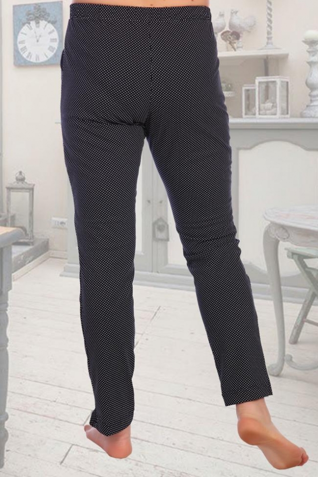 Брюки женские, с отрезным поясом на резинке, с карманами.