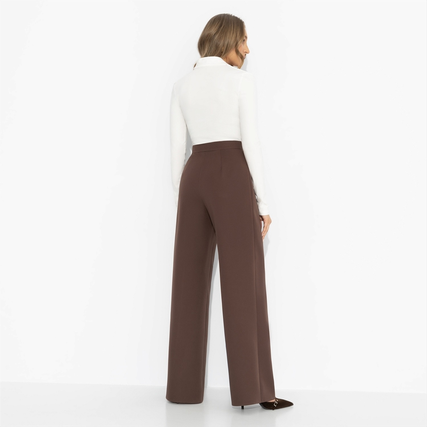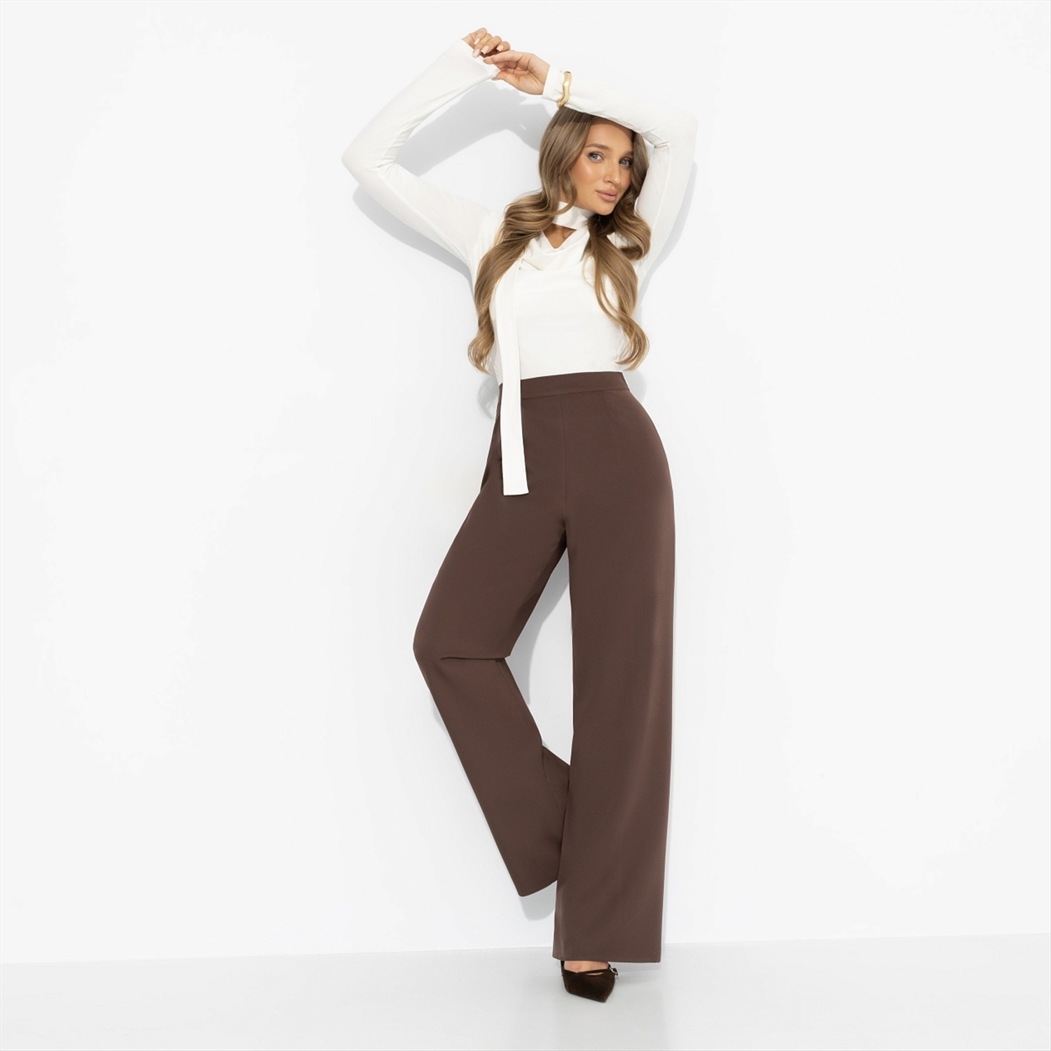 Состав: «Барби» (95% полиэстер, 5% эластан) Плотность ткани: Средняя Тип ткани: Текстиль Вид застежки: Молния Высота посадки: Средняя Карманы: Нет Основной цвет ткани: Коричневый Подклад: Нет Резинка по талии: Нет Рисунок/раппорт: Нет, все изделия идентичны Сезон: Круглогодичный Стиль: Классический Фасон брюк: Классические Фасон брюк: Классические Параметры модели на фото: