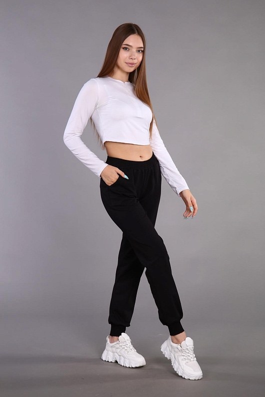 Трикотажные брюки модного силуэта из мягкого трикотажного полотна высокого качества - футер двухниточный. Комфортные брюки с карманами, с высокой посадкой, являются оптимальным выбором для повседневной носкии для занятий спортом. Пояс на резинке, боковые прорезные карманы.
