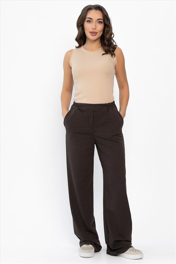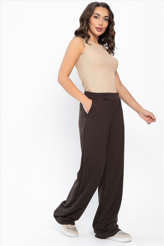 ID товара: 1136787 Состав: 60% Полиэстер, 35% Вискоза, 5% Эластан Сезон: Весна/Лето Длина: Полная Фасон: Свободный Тип карманов: С отрезным бочком Основная ткань: Полиэстер Стиль: Повседневный Страна бренда: Россия Страна производства: Россия Состав : 60% полиэстер, 35% вискоза, 5% эластан Материал : трикотаж Цвет : Коричневый Принт : отсутствует Карманы : Есть Резинка в поясе : Да Вид застежки : без застёжки Тип посадки брюк : Средняя Пояс брюк : притачной Крой брюк : прямой Фасон брюк : классические Декоративные элементы : отсутствуют Длина готового изделия по внутреннему шву : 44-78 см, 46-78 см, 48-78 см, 50-78 см Длина готового изделия по боковому шву : 44-104 см, 46-105 см, 48-106 см, 50-107 см Отснято с топом Б13054-33М [ https://ltcollection.ru/catalog/bluzki/166641/ ] и с жилетом Б14141-25М [ https://ltcollection.ru/catalog/zhakety/196785/ ] Стильные и спортивные брюки оттенка «горький шоколад» идеально подойдут для разных ситуаций повседневной жизни. Они комфортны и функциональны, что делает их незаменимыми в любом образе. Резинка по спине обеспечивает идеальную посадку. Наслаждайтесь каждым моментом с нашими брюками! Внимание! Рекомендуем ориентироваться на размерную сетку и выбирать свой привычный размер, согласно размерной таблице. *Допуск отклонения длины при массовом производстве 1-3 см является нормой. Уход за изделием: Ручная стирка или стирка в машине при температуре до 30 °C, деликатный режим. Не использовать отбеливатели. Разрешена глажка при температуре до 110 °C. При глажке использовать специальную насадку на подошве утюга, гладить с паром. Не замачивать и не выжимать. Стирать изделие наизнанку, отдельно от других вещей. Комментарии к товару
