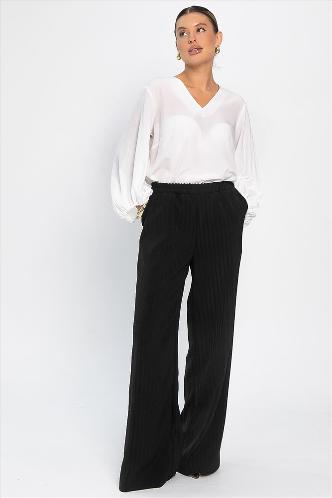 Отсняты с Б14423-12М Комфортные и стильные брюки с широким прямым кроем, идеально подходящие для повседневной носки. Эластичная резинка на поясе обеспечивает удобную посадку и свободу движений, а боковые карманы добавляют практичности и функциональности. Универсальный дизайн легко сочетается с разными топами и обувью, создавая модный и расслабленный образ на каждый день.