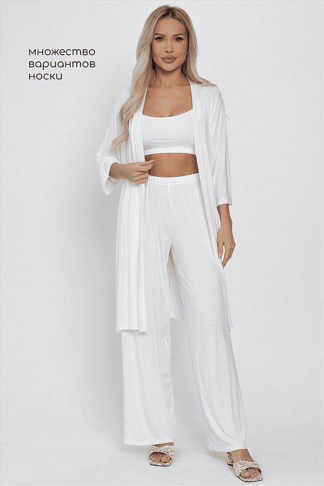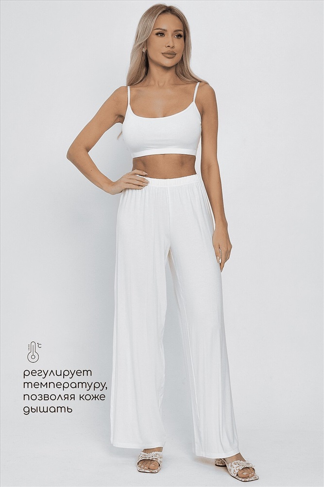 ID товара: 1203633 Состав: 95% Вискоза, 5% Лайкра Сезон: Демисезон Длина: Полная Фасон: Свободный Основная ткань: Вискоза Страна бренда: Россия Страна производства: Россия Состав : 95% вискоза, 5% лайкра Материал : трикотаж Цвет : молочный Принт : отсутствует Карманы : отсутствуют Резинка в поясе : да Вид застежки : без застёжки Тип посадки брюк : высокая Пояс брюк : притачной Крой брюк : свободный Фасон брюк : классические Декоративные элементы : отсутствуют Длина готового изделия по внутреннему шву : 44-83 см, 46-83 см, 48-83 см, 50-83 см, 52-83 см Длина готового изделия по боковому шву : 44-102 см, 46-102 см, 48-102 см, 50-102 см, 52-102 см Отснято с пеньюаром П14482-52М Откройте для себя идеальный комфорт и стиль с нашими женскими пижамными штанами! Изготовленные из мягкой и приятной на ощупь вискозы с добавлением лайкры, они обеспечивают свободу движений и комфорт на весь день. Эти брюки подходят как для сна, так и для домашнего отдыха. Создайте уютную и стильную атмосферу дома с этими универсальными пижамными штанами. Внимание! Рекомендуем ориентироваться на размерную сетку и выбирать свой привычный размер, согласно размерной таблице. *Допуск отклонения длины при массовом производстве 1-3 см является нормой. Уход за изделием: Ручная стирка или стирка в машине при температуре до 30 °C, деликатный режим. Не использовать отбеливатели. Разрешена глажка при температуре до 110 °C. При глажке использовать специальную насадку на подошве утюга, гладить с паром. Не замачивать и не выжимать. Стирать изделие наизнанку, отдельно от других вещей. Комментарии к товару