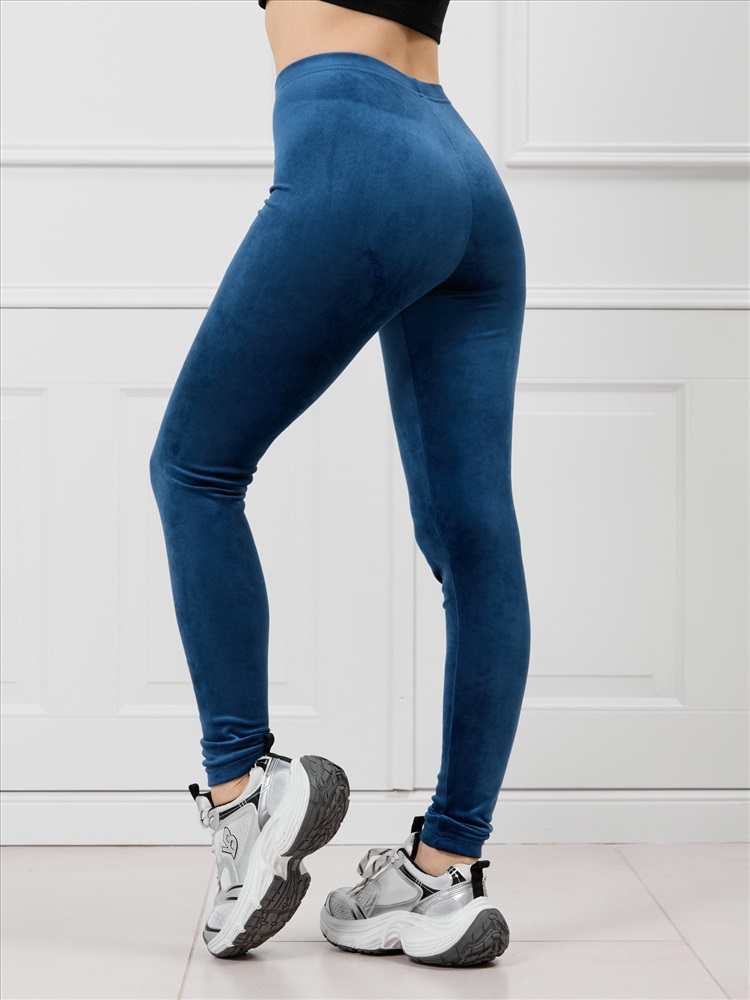 Леггинсы молодежные из трикотажного гладкокрашенного полотна «велюр-стрейч» длинные, облегающие фигуру, с эластичной тесьмой по талии.