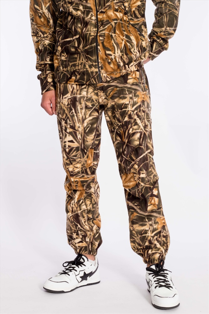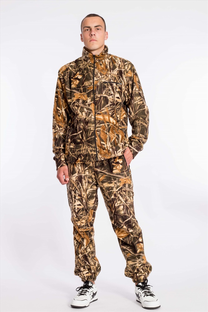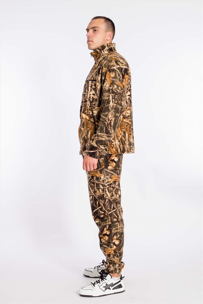 Мужские брюки выполнены из флиса, материал отлично сохраняет тепло и приятен на ощупь. Пояс притачной на резине и шнуре. По бокам размещены карманы на молнии. По низу брюки собраны на резинку.