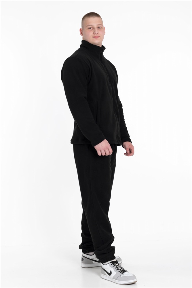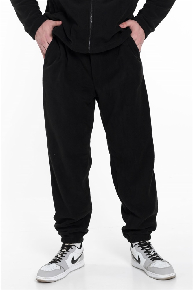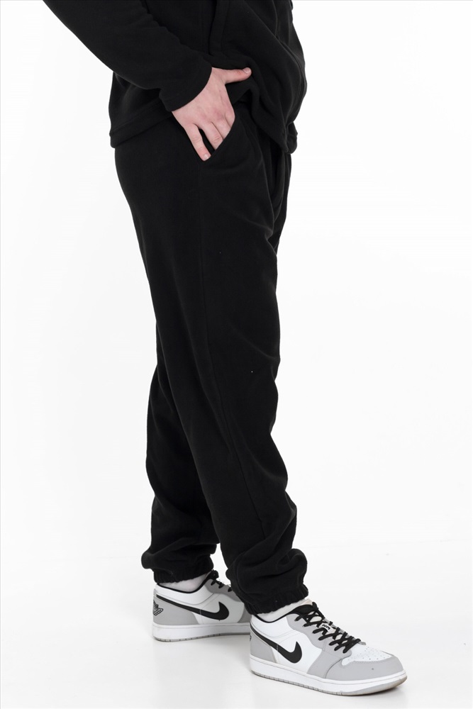 Брюки из мягкого поларофлиса — идеальный вариант для прогулок и активного отдыха в прохладную погоду. Тёплое и приятное к телу полотно обеспечивает надёжную защиту от холода и сохраняет тепло, не сковывая движений. Пояс и низ штанин на резинке гарантируют удобную посадку, а боковые карманы добавляют практичности. Однотонный черный цвет универсален и легко комбинируется с толстовками, свитшотами или куртками. Эти брюки станут отличной основой комфортного повседневного образа в холодное время года.
