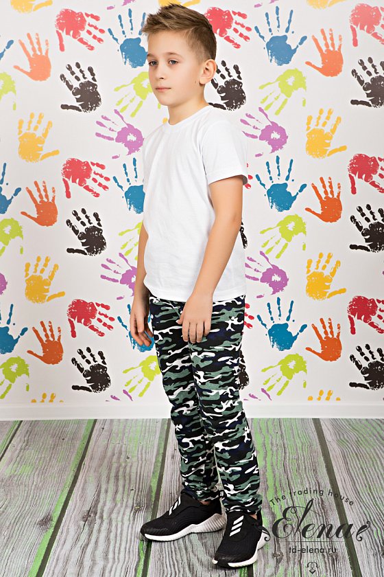 Брюки выполнены из кулирки, 100% хлопок (набивка камуфляж). Брюки без боковых швов, на резине по поясу.