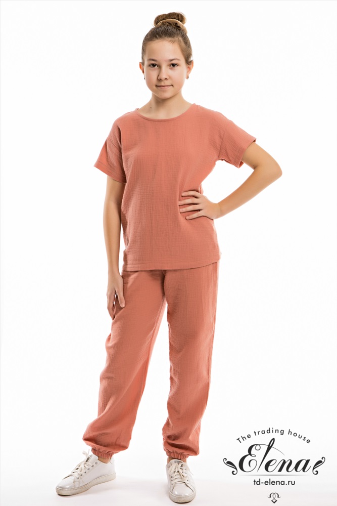 Вид ткани: Муслин Сезон: Летний Силуэт: Свободный Состав: Хлопок 100% Цвет Номенклатуры: сухая роза Детские летние брюки выполнены из муслина. Пояс и низ брюк на резинке. Комментарии к товару