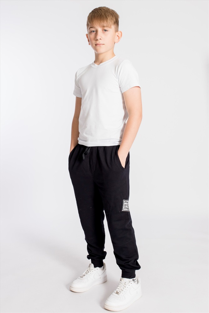 Вид ткани: Футер двухниточный Сезон: Всесезонный Силуэт: Свободный Состав: Хлопок 80% Полиэстер 20% Цвет Номенклатуры: черный Брюки выполнены из футера двухнитки. Пояс на резине и шнуре, по бокам размещены карманы. Брюки оригинального кроя и с декоративными элементами в виде нашивки сбоку. Низ брюк с манжетами из кашкорсе. Комментарии к товару