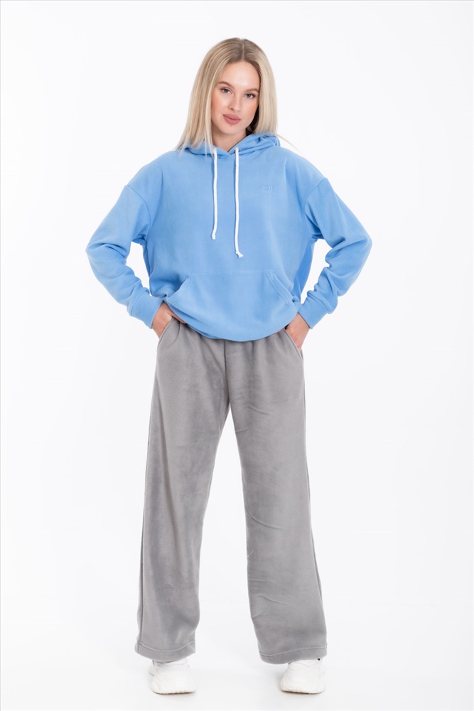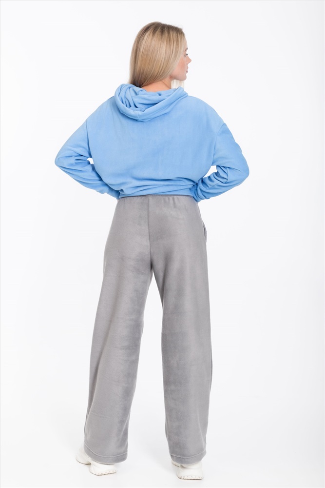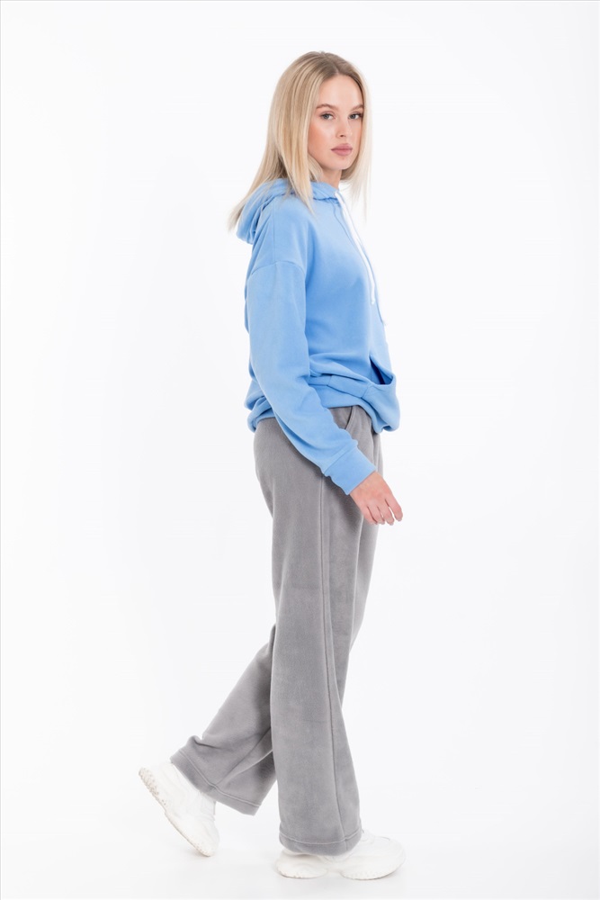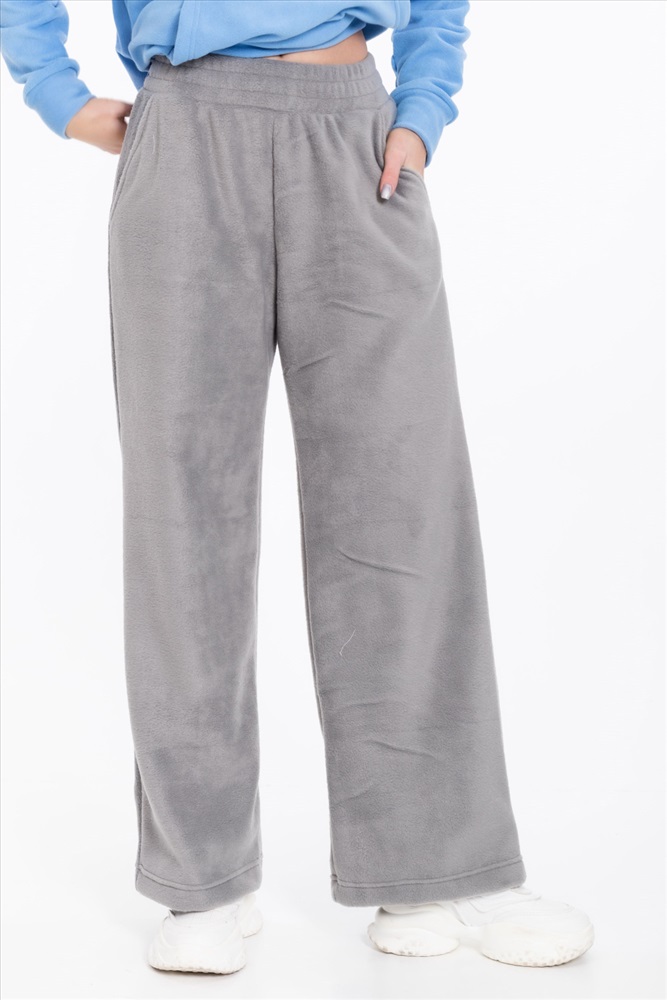 Женские серые брюки свободного кроя из поларофлиса — отличный выбор для повседневной носки. Материал хорошо сохраняет тепло, а пояс на резинке обеспечивает комфортную посадку. Брюки имеют удобные карманы, что делает их практичными.