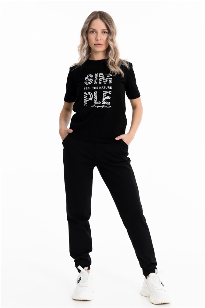 Тип длинны: Стандартная Вид ткани: Футер двухниточный Сезон: Всесезонный Силуэт: Прямой Состав: Хлопок 72% Полиэстер 20% Лайкра 8% Цвет Номенклатуры: черный