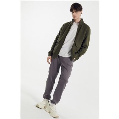 Брюки прямые, посадка средняя. Пояс отрезной из основного полотна с эластичной тесьмой внутри. С внешней стороны пояса пробиты петли и втянут шнур. На левой передней половинке отстрочена декоративная строчка имитация гульфика. В боковых швах обработаны карманы хулиганы. Подкладка кармана из основного полотна. По низу брюк отрезные манжеты с эластичной тесьмой внутри. Задний накладной КАРМАН ПО ЗАДАНИЮ