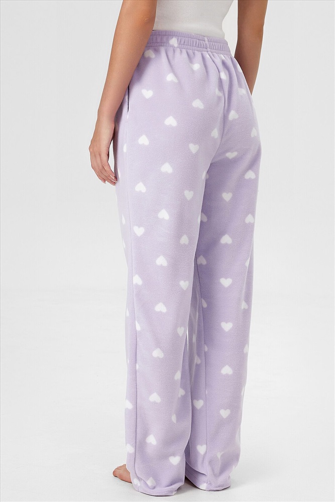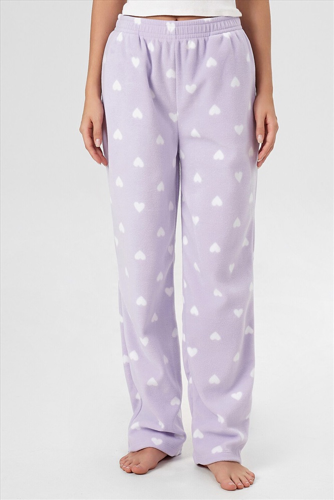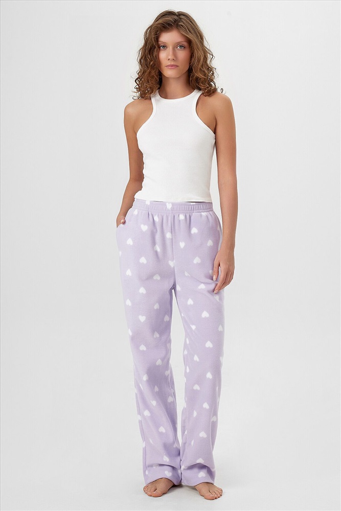 Брюки женские, прямого силуэта из трикотажного полотна флис. Посадка брюк средняя. Пояс цельнокроеный с эластичной тесьмой внутри. Низ брюк обработан в подгибку.