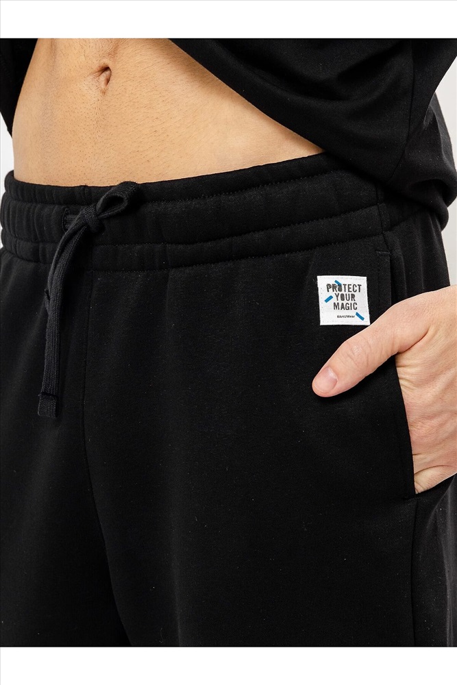 Брюки из трикотажного футера с теплым подчесом. Силуэт прямой. Нижние срезы подогнуты, с эластичной тесьмой, которая образует сборочки. Есть удобные боковые карманы. Пояс со шнурком-затяжкой. Комфортная модель брюк!