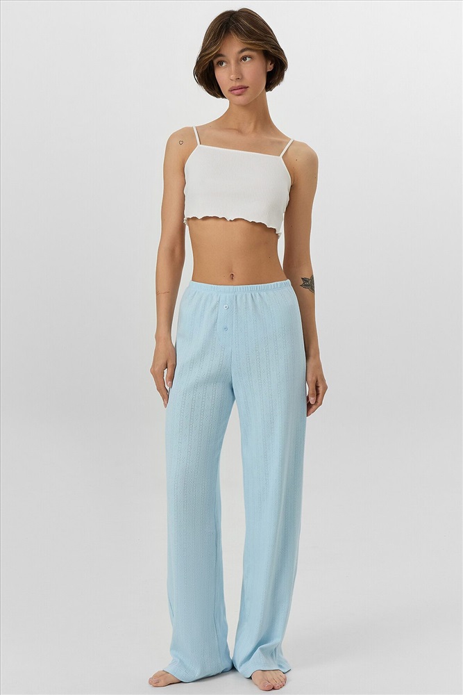 ID товара: 1198133 Состав: 100% Хлопок Сезон: Демисезон Длина: Полная Вид застежки: Без застежки Посадка: Высокая Тип карманов: Без карманов Декоративные элементы: Пуговицы Утеплитель: Без утепления Основная ткань: Хлопок Уход: Деликатная стирка при 30 градусах Модель брюк: Прямые Особенности модели: Нет Фактура материала: Рибана Страна бренда: Беларусь Страна производства: Беларусь Домашние брюки для женщин — эталон комфорта и расслабленного стиля. Модель прямого кроя с мягким поясом на эластичной резинке обеспечивает идеальную посадку без давления на талию. Декоративные пуговицы добавляют визуальную легкость, а аккуратно подшитый низ предотвращает скручивание ткани. Брюки сшиты из дышащего трикотажа, который мягко облегает тело, не стесняя движений во время отдыха или домашних дел. Универсальный фасон легко сочетается с майками, свитшотами и пижамными верхами. Вы можете купить домашние брюки этой модели — они устойчивы к деформации, сохраняют цвет и форму после множества стирок. Идеальны для сна, утреннего кофе или работы из дома. Практичные и немаркие оттенки подходят для ежедневной носки. Женские домашние брюки — выбор тех, кто ценит в повседневной одежде нежность тканей, свободу кроя и внимание к деталям. Комментарии к товару