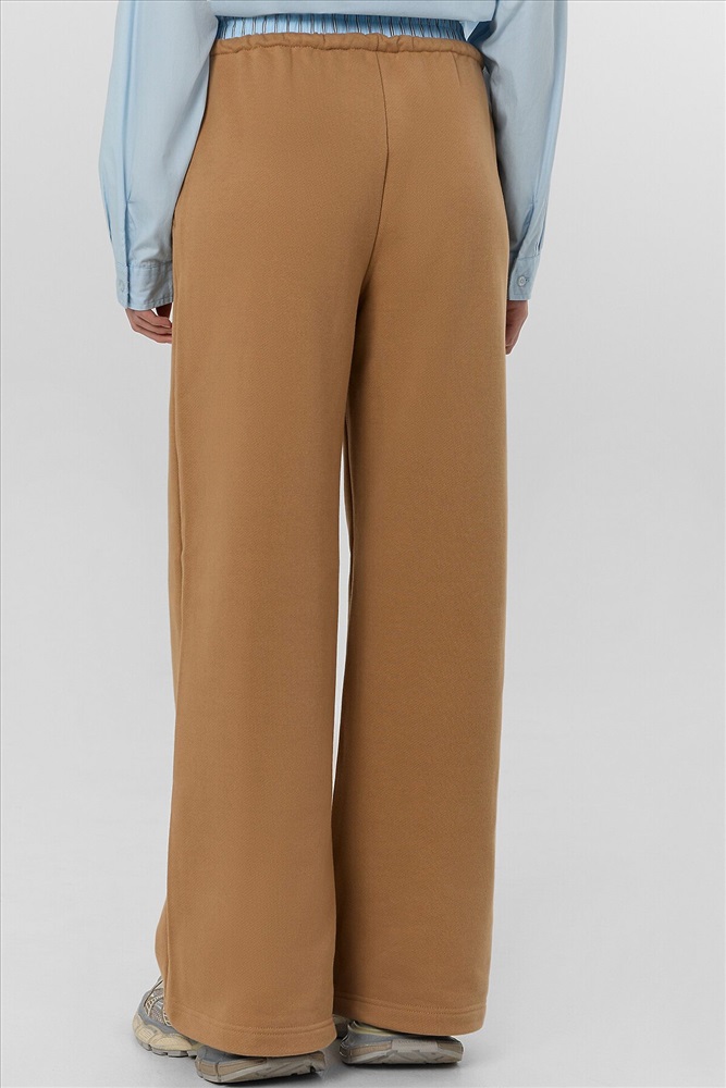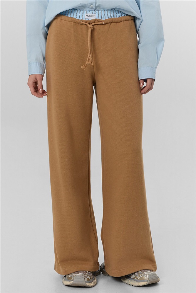 Пояс брюк оформлен практичным шнурком с аккуратными узелками для регулировки посадки. В боковых швах расположены удобные карманы с мягкой подкладкой из кулирки. Натуральный хлопок мягко заботится о вашей коже, обеспечивая воздухообмен и сохраняя комфорт на протяжении всего дня. Эти брюки станут гармоничным дополнением как для повседневных образов с футболками и свитшотами, так и для более элегантных луков.