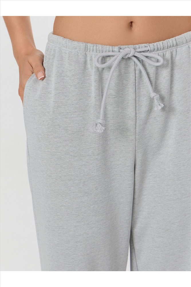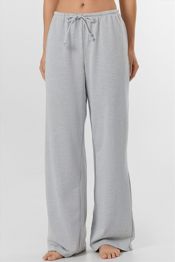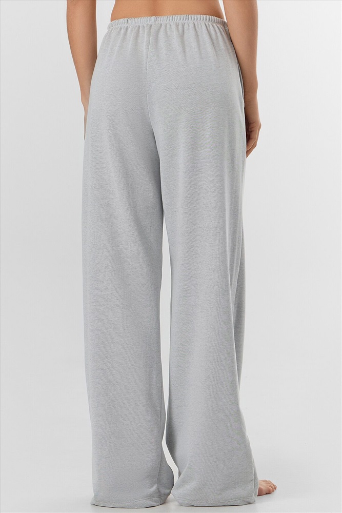 Женские домашние брюки — идеальный вариант для комфортного отдыха. Модель свободного силуэта с посадкой на талии не сковывает движений, а эластичный пояс с резинкой гарантирует удобную посадку. Функциональный шнур, протянутый в петли по центру пояса, позволяет регулировать объем по вашему желанию.