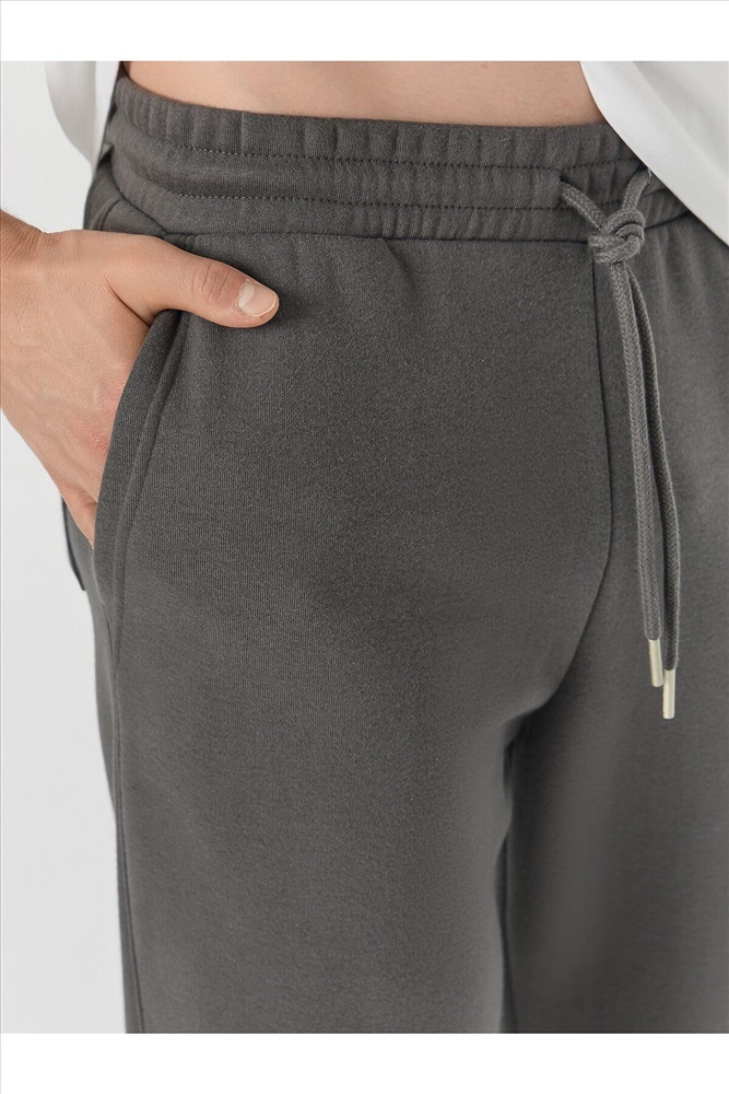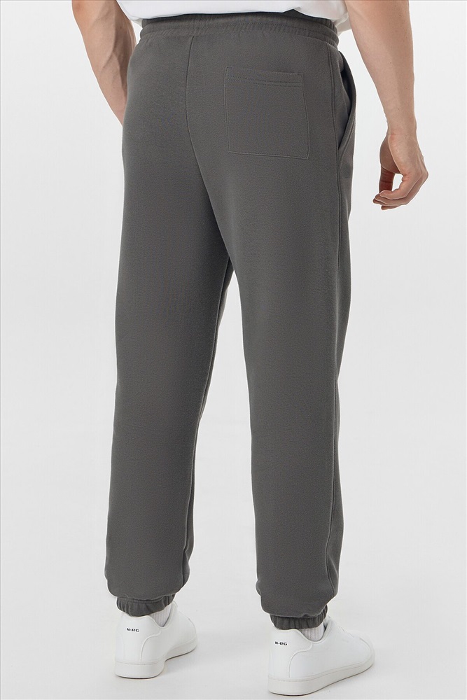 Джогеры прямые, зауженные к низу. Пояс отрезной с эластичной тесьмой внутри. С внутренней стороны пояса пробиты петли и втянут шнур с эглетами (8EКXWCp-1). В боковых швах обработаны карманы - хулиганы, подкладка карман из кулирки. На задней правой половинке накладной карман, по заданию. Нижние срезы брюк обработаны швом вподгибку с эластичной тесьмой внутри.