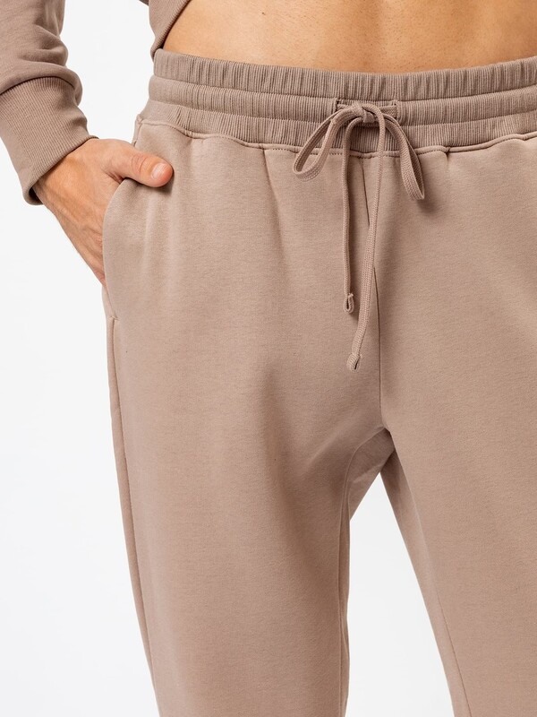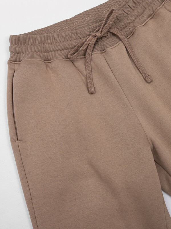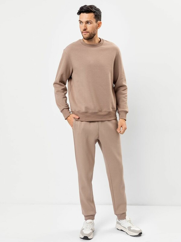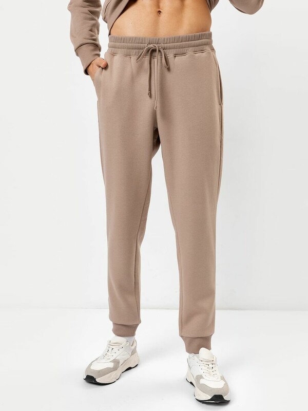 Стильные брюки из трикотажного футера с теплым подчесом. Силуэт зауженный, штанины с манжетами. Есть удобные боковые карманы. В поясе – эластичная тесьма и шнурок-затяжка. Просто, комфортно, актуально!