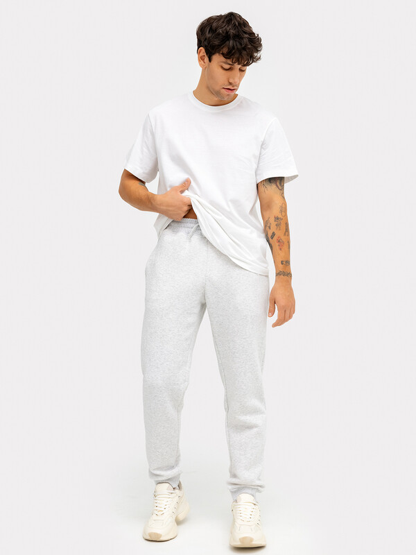 Стильные брюки из трикотажного футера с теплым подчесом. Силуэт зауженный, штанины с манжетами. Есть удобные боковые карманы. В поясе – эластичная тесьма и шнурок-затяжка. Просто, комфортно, актуально!