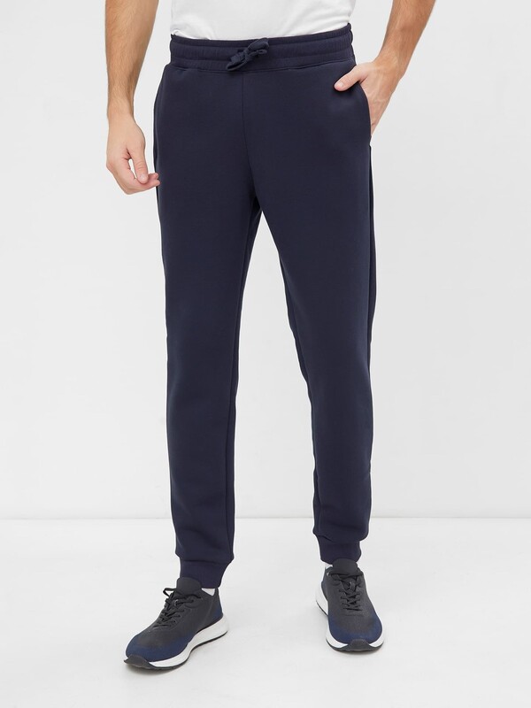 Стильные брюки из трикотажного футера с теплым подчесом. Силуэт зауженный, штанины с манжетами. Есть удобные боковые карманы. В поясе – эластичная тесьма и шнурок-затяжка. Просто, комфортно, актуально!