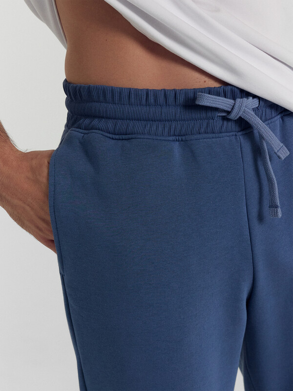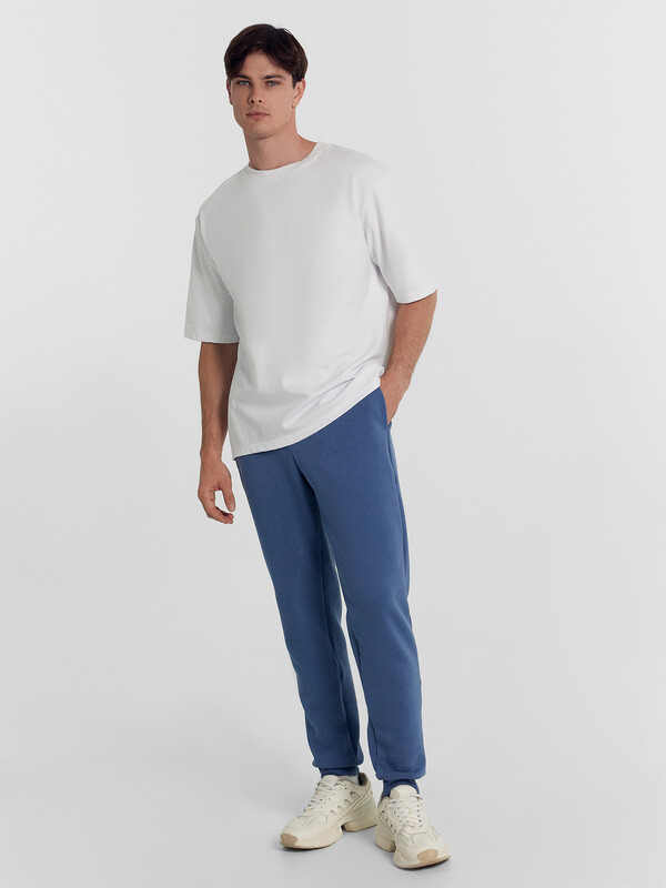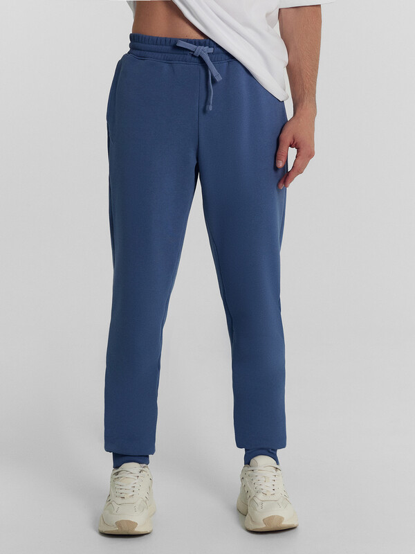 Стильные брюки из трикотажного футера с теплым подчесом. Силуэт зауженный, штанины с манжетами. Есть удобные боковые карманы. В поясе – эластичная тесьма и шнурок-затяжка. Просто, комфортно, актуально!