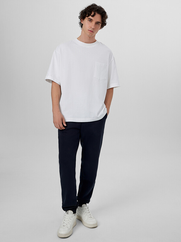 Стильные брюки из трикотажного футера с теплым подчесом. Силуэт зауженный, штанины с манжетами. Есть удобные боковые карманы. В поясе – эластичная тесьма и шнурок-затяжка. Просто, комфортно, актуально!