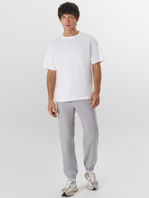 Производитель: Mark Formelle Текстильные брюки классической длины из натурального хлопка и льна. Силуэт свободный, немного зауженный к низу. Пояс с эластичной тесьмой внутри и регулировочным шнуром. Есть карманы-хулиганы. По низу штанин – эластичная тесьма. Гульфик не функциональный, имитация. Стильные брюки!