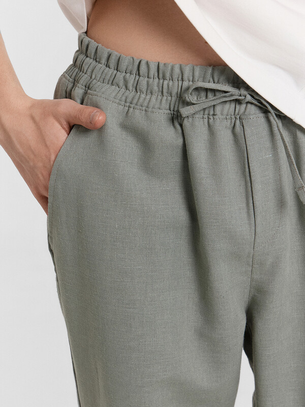 Мужские брюки классической длины станут стильным и удобным дополнением вашего гардероба. Изделие выполнено из натурального хлопка и льна, что обеспечивает мягкость, отличную воздухопроницаемость и долговечность. Силуэт свободный, слегка зауженный к низу, создаёт современный и элегантный образ. Эластичный пояс позволяет легко регулировать посадку, обеспечивая максимальный комфорт. Боковые карманы добавляют функциональности и практичности, а имитация гульфика придаёт изделию стильный вид. Эти брюки идеально подходят для повседневной носки и особых случаев, позволяя вам создавать множество стильных и удобных образов.