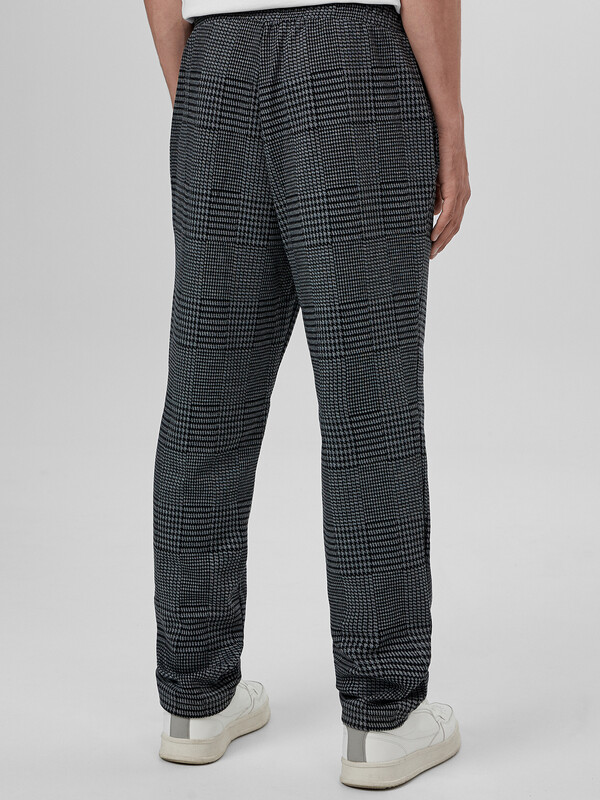 Мужские серые брюки в клетку — это стильная модель, сочетающая классику и современный комфорт. Прямой силуэт с легким заужением к низу и стрелками, отстроченными спереди, создаёт элегантный деловой образ. Трикотаж с фактурной черной клеткой обеспечивает мягкость, свободу движений и универсальность: брюки подходят как для офиса, так и для повседневной носки. Эластичный пояс с регулируемым шнурком-затяжкой гарантирует идеальную посадку без дискомфорта, а боковые карманы добавляют практичности.