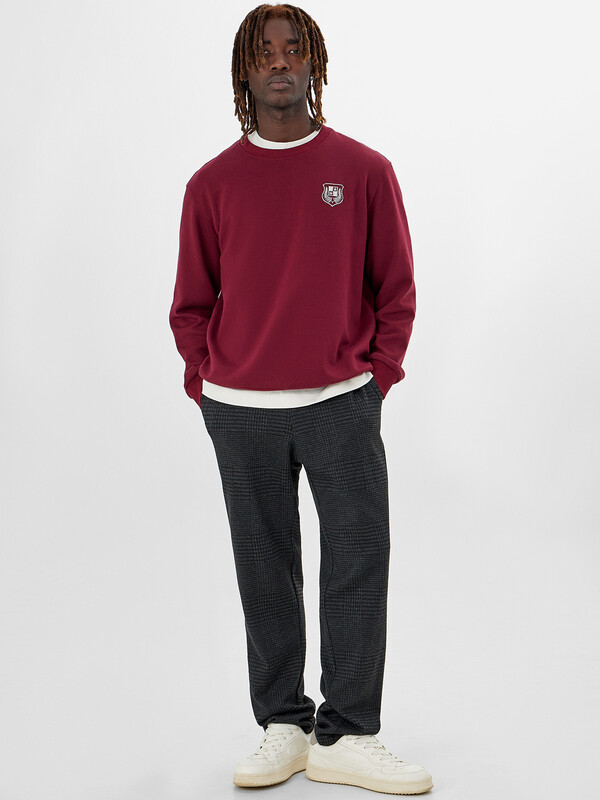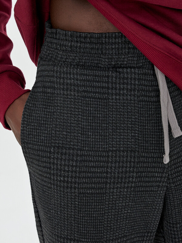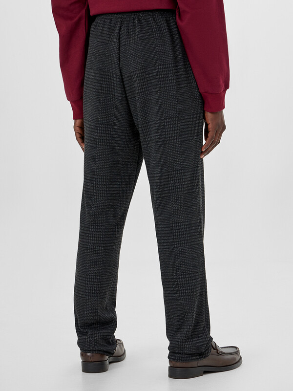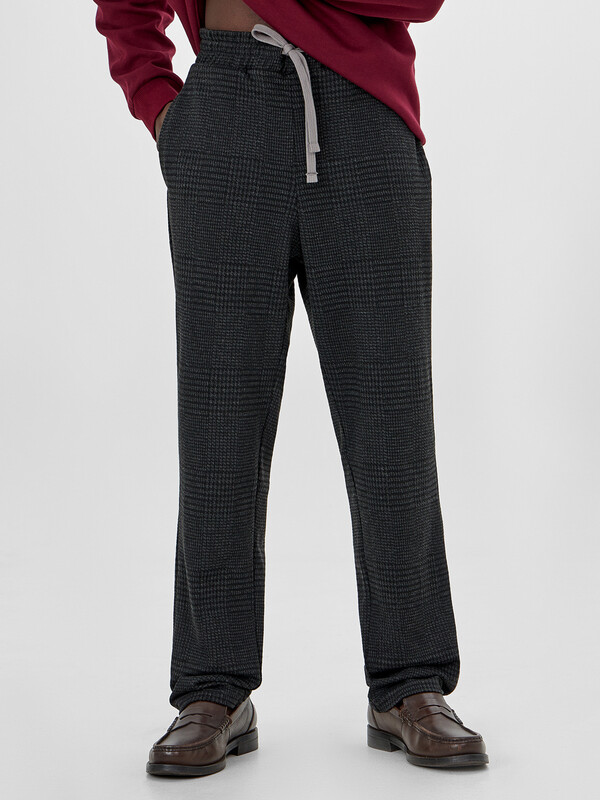 Брюки прямого силуэта из трикотажного академика. Немного заужены к низу. В боковых швах – удобные карманы. Пояс с эластичной тесьмой внутри, регулировочным шнурком-затяжкой и отделочными строчками. Спереди заутюжены и отстрочены стрелки. Стильно!