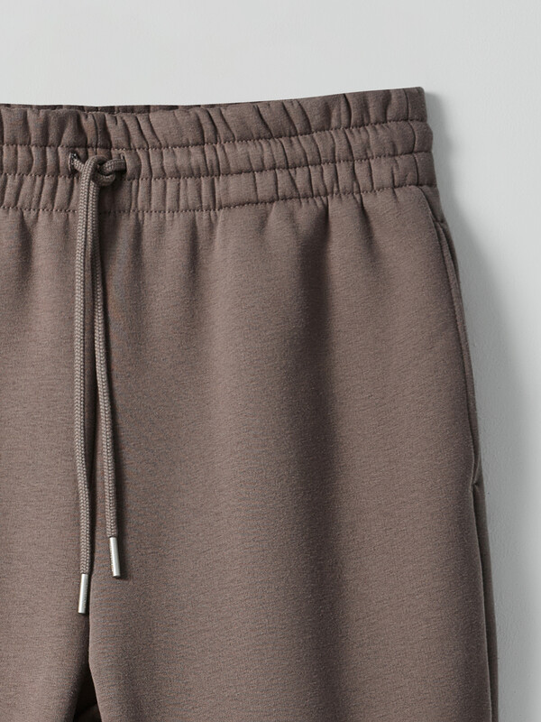 Брюки из трикотажного футера. Длина классическая, облегание свободное. Есть боковые карманы. Пояс широкий, с эластичной тесьмой и шнурком-затяжкой. Низ брюк подложен с эластичной тесьмой. Рекомендуем!