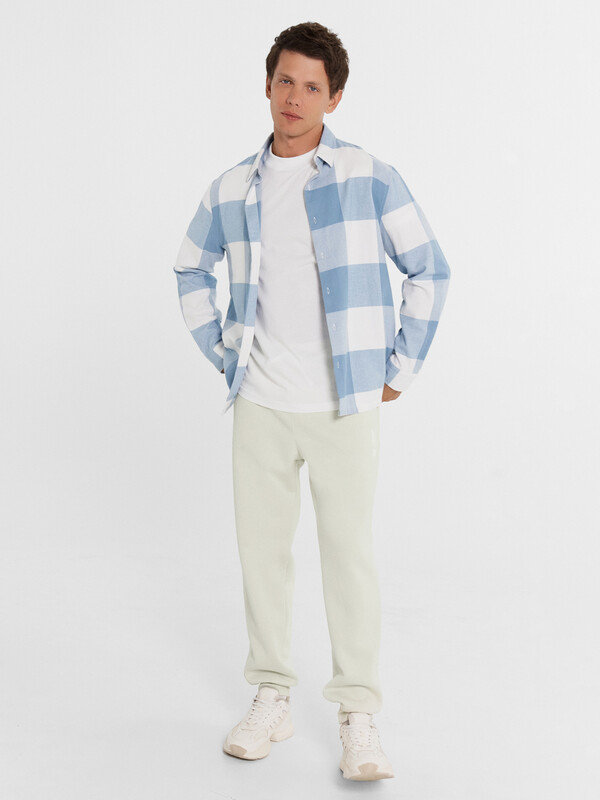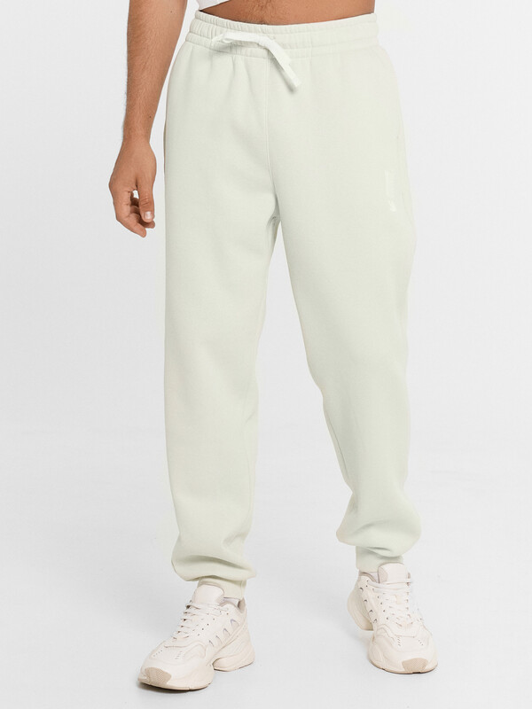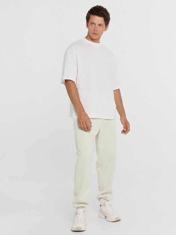 Брюки из трикотажного футера с теплым подчесом. Силуэт прямой. Нижние срезы подогнуты, с эластичной тесьмой, которая образует сборочки. Есть удобные боковые карманы. Пояс со шнурком-затяжкой. Комфортная модель брюк!