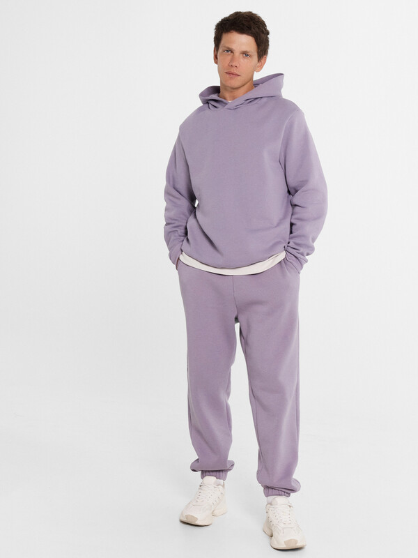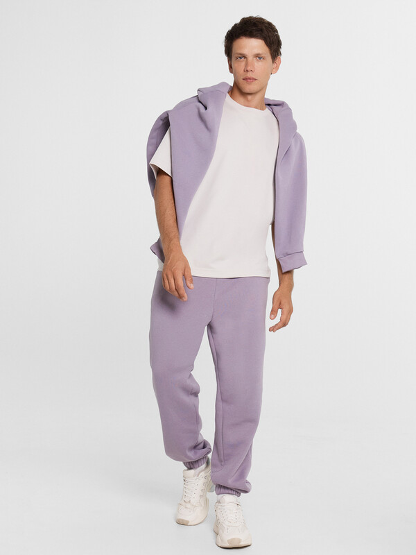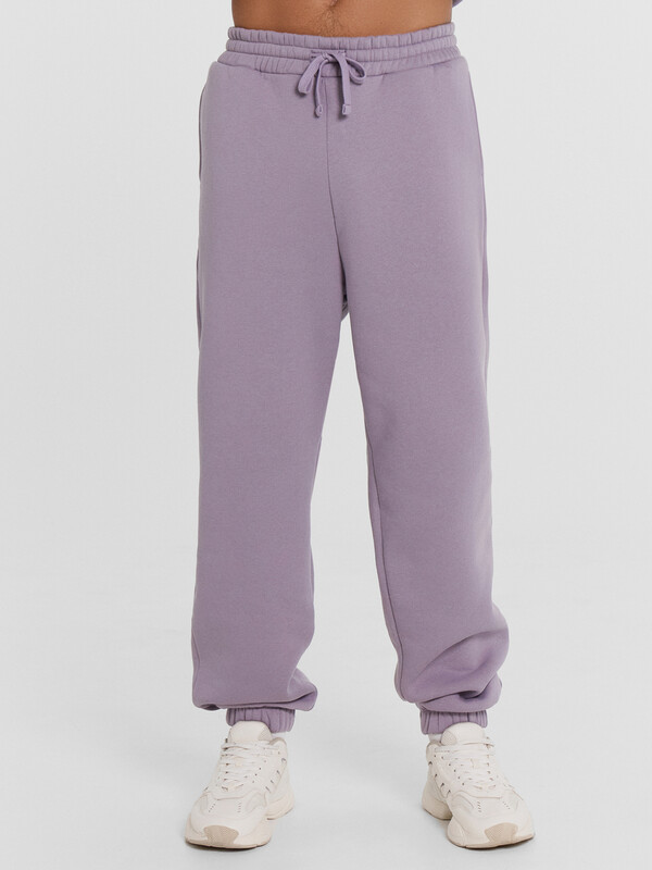 Брюки из трикотажного футера с теплым подчесом. Силуэт свободный. Линия талии классическая. Сидение немного спущено. Есть удобные боковые карманы. Пояс с эластичной тесьмой и регулировочным шнурком-затяжкой. Низ брюк подогнут, с эластичной тесьмой. Удобные брюки – рекомендуем!