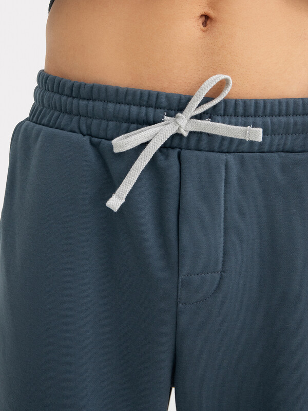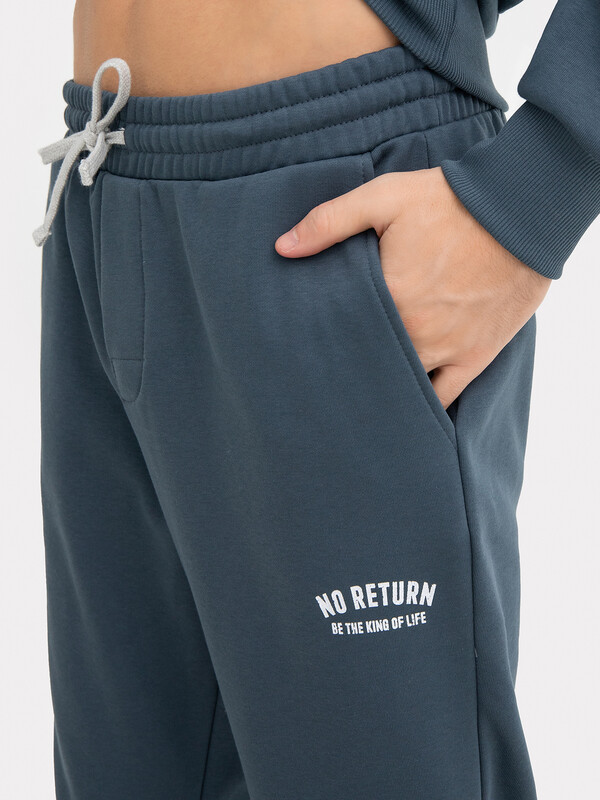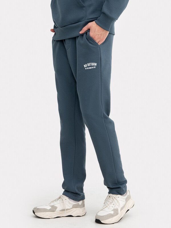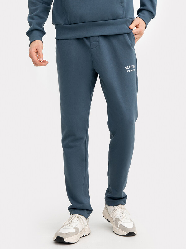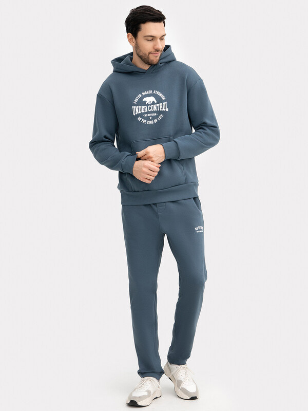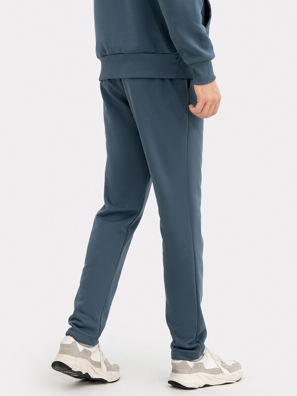 Прямые свободные брюки для мужчин. Выполнены из легкого трикотажного футера. Пояс – с эластичной тесьмой внутри и шнурком-завязкой, который позволяет регулировать ширину в талии. Есть удобные боковые карманы. Гульфик – не функциональный, имитация. Штанины подогнуты. Рекомендуем!