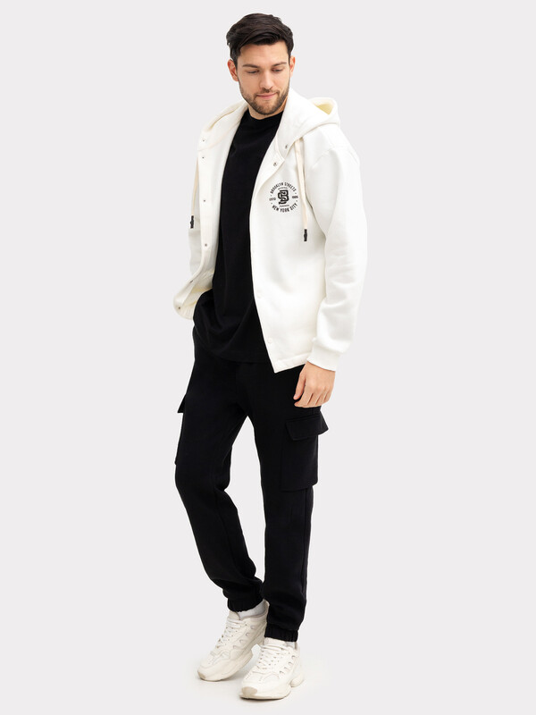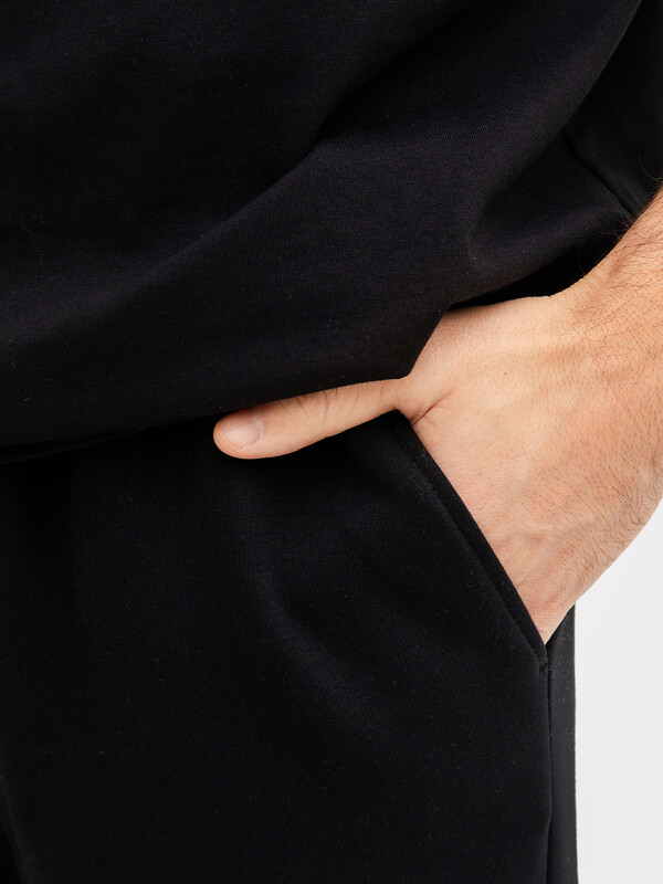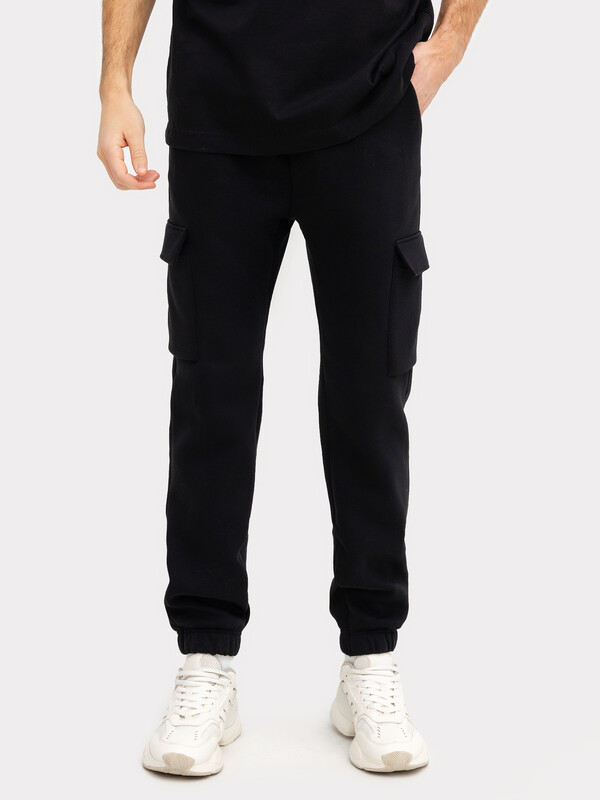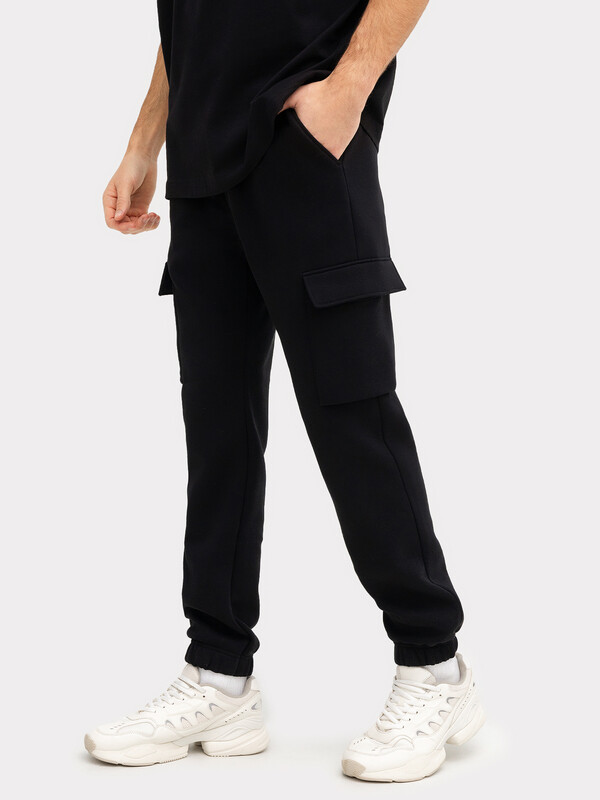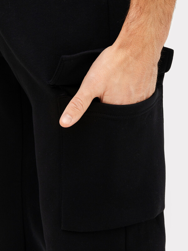 Брюки карго изготовлены из трикотажного полотна футер.