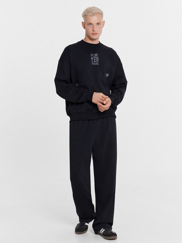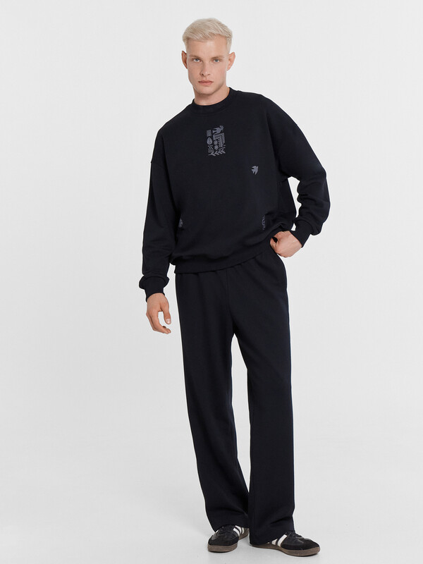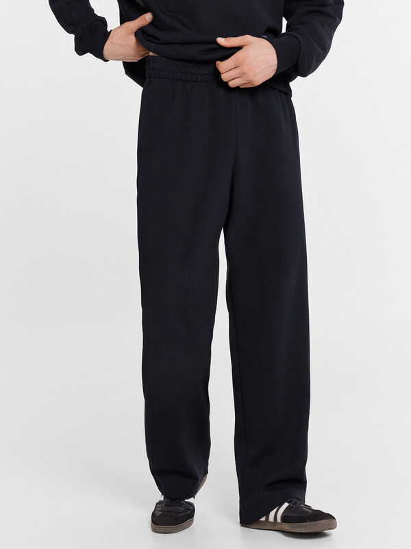 Брюки прямые, свободноые. Посадка по шву сидения слегка занижена.