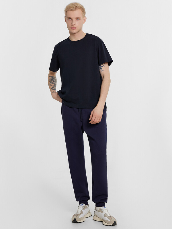Брюки прямые слегка зауженные к низу, посадка средняя.