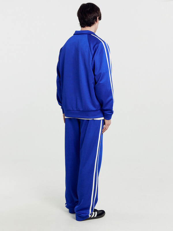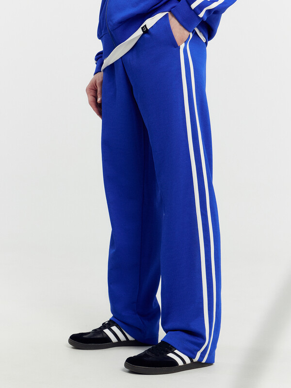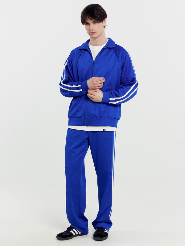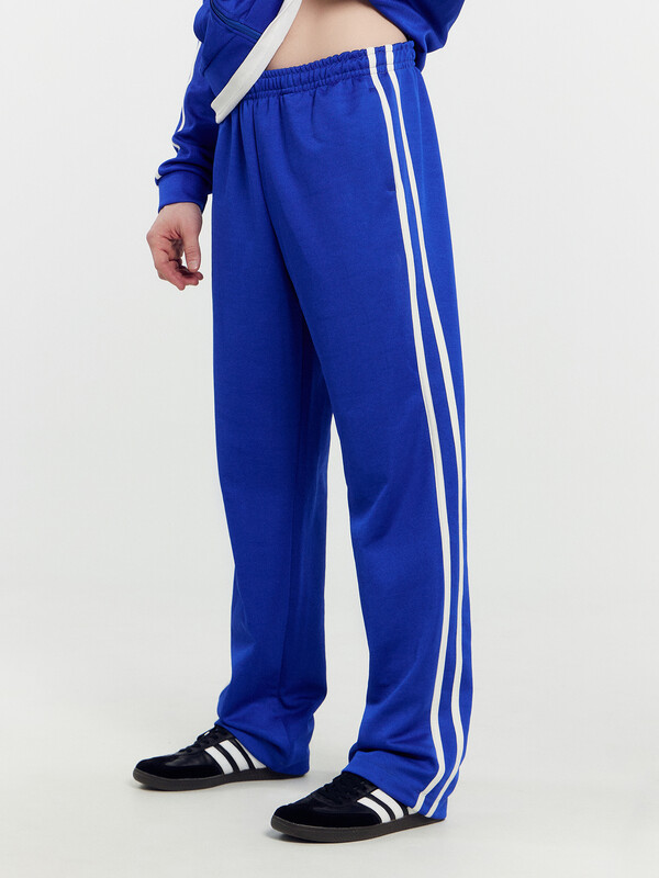Пояс цельнокроеный с эластичной тесьмой внутри. С внутренней стороны пояса пробиты петли и втянут шнур с застроченными концами. Боковой шов смещен в сторону переда. По бокам настрочены лампасы из кулирки. На передних половинках обработаны карманы в боковых швах, подкладка кармана из основного полотна. Нижние срезы брюк обработаны швом вподгибку на 2х игольной плоскошовной машине. 81% пэ, 19% хлопок Комментарии к товару