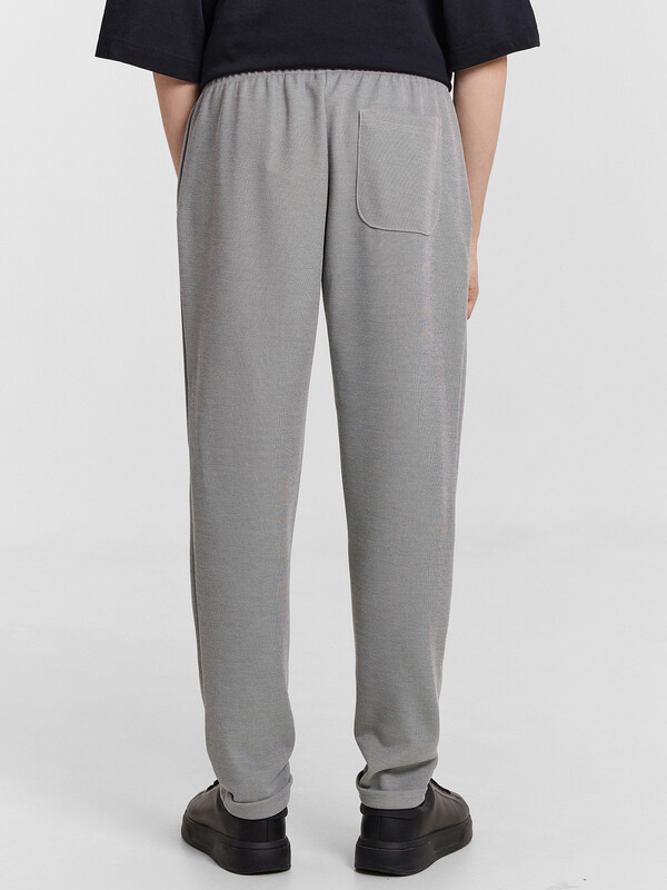 Мужские брюки из интерлока – идеальное сочетание комфорта и стиля. Эта модель прямого силуэта, слегка зауженная к низу, подчеркивает современный и актуальный дизайн. Пояс с эластичной кулиской обеспечивает оптимальную посадку и комфорт в течение всего дня. Карманы в боковых швах добавляют практичности и функциональности, а отвороты на низу брюк придают завершенный и стильный вид. Эти брюки станут отличным дополнением к вашему повседневному гардеробу, позволяя выглядеть элегантно и уверенно в любой ситуации.
