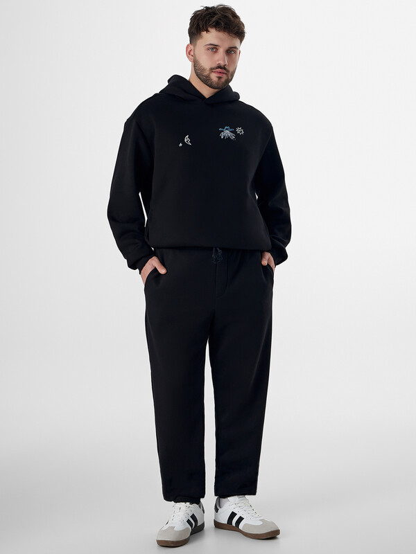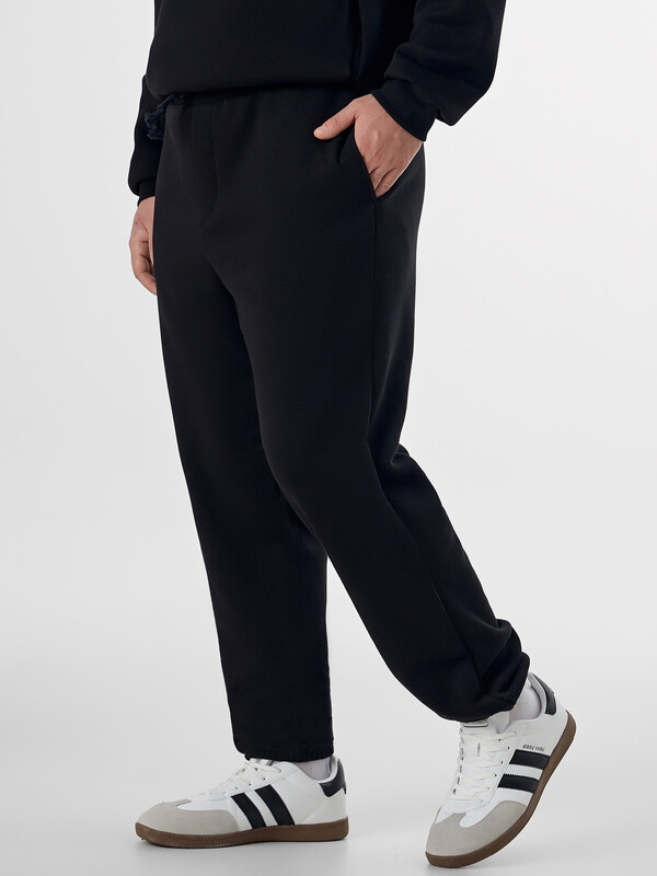 Производитель: Mark Formelle Брюки прямые, свободные. Пояс отрезной с эластичной тесьмой внутри. С внешней стороны пояса пробиты петли и втянут шнур (8КXW-1  8мм) с узлом на концах. В боковых швах обработаны карманы, подкладка кармана из основного полотна. На левой передней половинке проложена декоративная строчка - имитация гульфика. На задней правой половинке накладной карман. Нижние срезы брюк обработаны швом вподгибку с эластичной тесьмой внутри.