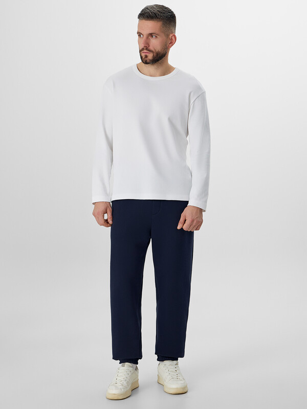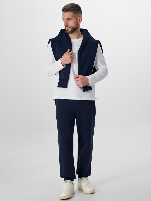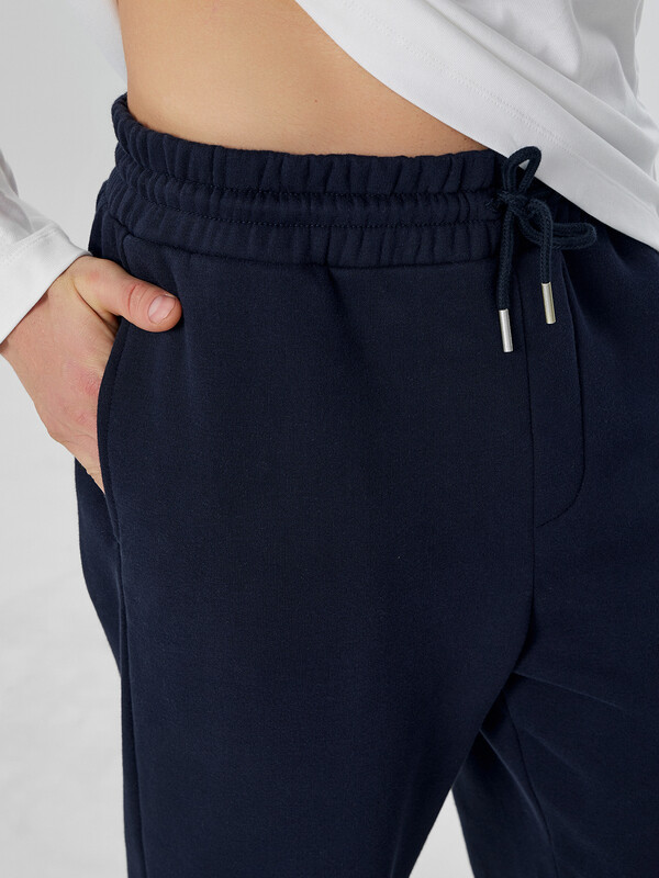 Мужские брюки прямого свободного силуэта — практичная и удобная модель, идеально подходящая для повседневной носки, отдыха или прогулок. Эластичный пояс на кулиске обеспечивает комфортную посадку и позволяет регулировать объем, адаптируясь под фигуру. Карманы в боковых швах добавляют функциональности и делают изделие более универсальным. Декоративная строчка на передней половинке — имитация гульфика — добавляет визуальный акцент, а накладной карман на задней половинке — это еще один элемент удобства и стиля. Обработка нижних срезов швом в подгибку с эластичной тесьмой внутри фиксирует форму и создает завершенный силуэт. Изделие выполнено из футера с подчесом — мягкого, теплого трикотажного материала с приятной внутренней поверхностью, который сохраняет тепло и комфорт при носке. Брюки легко сочетаются с худи, свитшотами или футболками, оставаясь актуальными в любое время года.